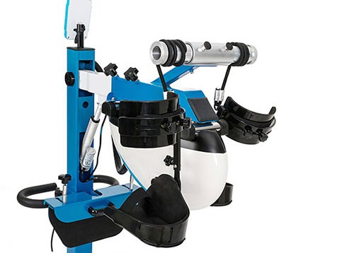 腿的右側(cè)裝有雙導(dǎo)輪,腿的左側(cè)固定在萬向?qū)л喌牡撞浚陧敯宓捻敳,位于槽口?nèi),在裝置的前部和后部位置固定有提升裝置,在患者胸部位置設(shè)有支撐的緊固裝置在凹槽內(nèi),緊固裝置與提升裝置配合。